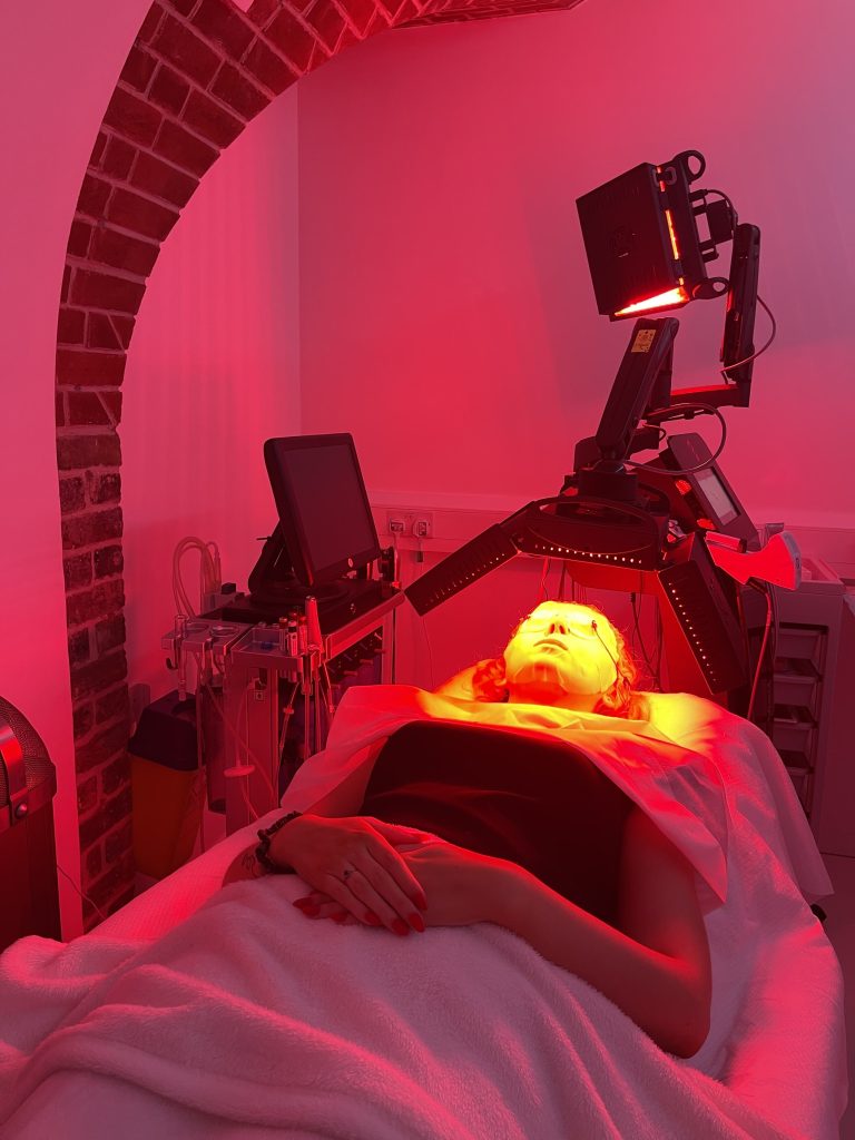 A sheet mask is then applied to help with the redness, followed by some LED light therapy which triggers rejuvenation.